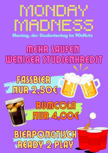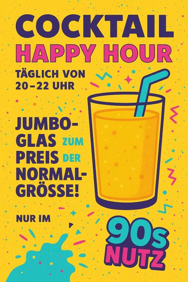 Tauche ein in eine Ära voller kultureller Vielfalt, unverwechselbarer Mode, ikonischer Musik und bahnbrechender Technologie. Die 90er Jahre waren eine Zeit des Wandels und der Innovation, die unsere heutige Popkultur nachhaltig geprägt hat. Mit uns reist Du zurück in diese Zeit und darfst leckere Getränke im Rythmus der größten Hits aus den 90er Jahren genießen.